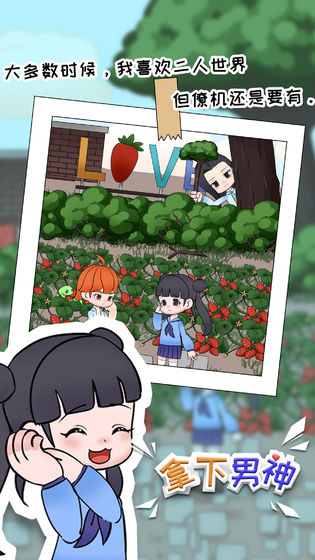 2. 恋爱剧情:玩家需要通过完成男神角色的恋爱剧情,解锁甜蜜瞬间,提升与男神角色的亲密度。