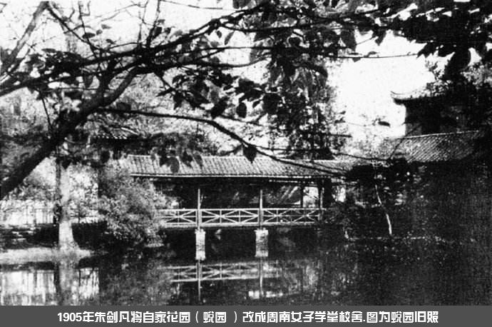 宁乡朱剑凡,明室后裔,陕甘提督、名将周达武之子,素怀教育救国之情,长抱启迪民智之念,而于男女平权尤具深切之关注。游学日本归来,乃于清光绪三十一年(公元一九零五年)毁家兴学,创办周南女学于长沙“蜕园”,初名“周氏家塾”,以避朝廷女禁之锋。光绪三十三年,朝廷格于形势,允开女学,乃取《诗经·周南》之女性象征意义,改名周南女学堂,周南之名,自兹芳馨远播,历久弥香。自晚清迄于民国,虽屡经时局动乱、风云熙攘,周南仍以其弦歌不辍为社会培育英才,奇功大勋,当铭青史。