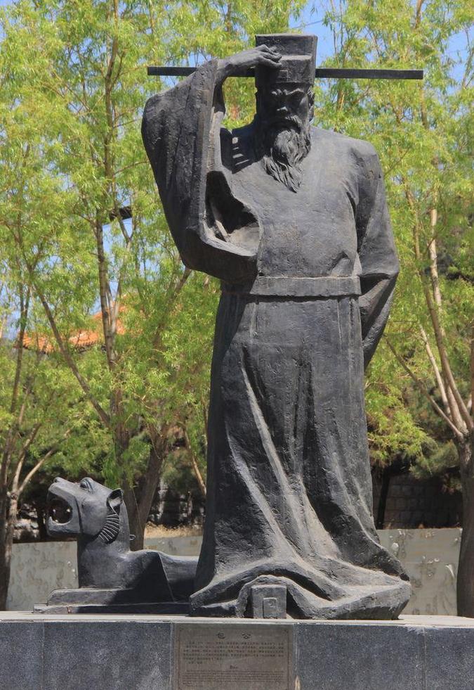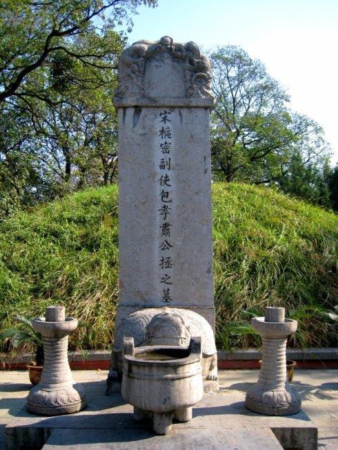 神道右边立有“龟趺螭首神道碑”。碑上撰写着包拯生平事迹,内容与墓志铭的内容基本相近。“龟趺螭首神道碑”竖立在之上,其实,是神道碑下的石座,民间习惯将它雕成似龟的动物形状,是取其力大能负重的意思。