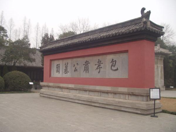 穿过墓园大门,先映入眼帘的是大型照壁。照壁高4.2米,宽10.2米,上刻有“包孝肃公墓园”六个苍劲有力的楷书大字,系著名书法家方绍武书写。其功能是石阙前的屏障,起隐蔽作用,同时也起到装饰性作用。这方照壁是安徽省目前最大的照壁,其构造完全是按宋代《营造法式》建造而成。