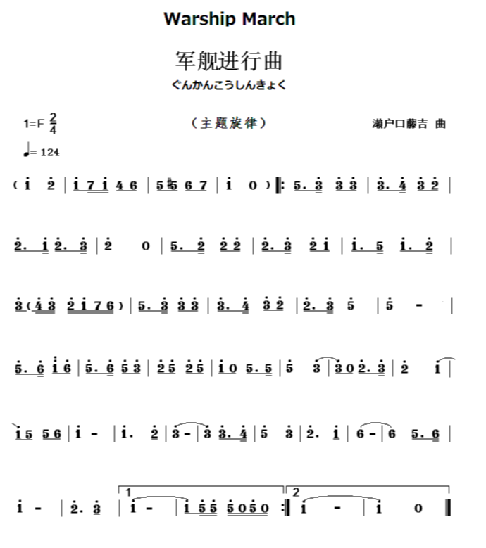 1.《军舰进行曲》吹奏乐版(三户知章・濑户口晃 编曲)(共同音乐出版社、绝版)