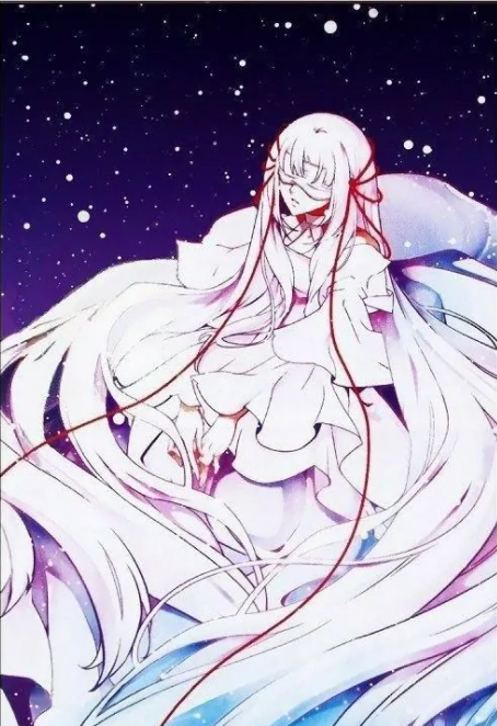最初梦见她,是在他中了恶灵魂缚那晚,他睡下,宫女像往常那样放下锦帐,在寝殿中间的熏笼里,轻轻地添上一点檀香,然后,依次艳门退出,淡淡的香味在空气中弥散,烛已尽熄,只有银质烛台上镶嵌的夜明珠散出微光,守护着寝殿的幽暗。时至午夜.....窗外忽起大雾,雾中银光一闪,一枚凌空徐行的银针,穿窗而入.....一切悄无声息,没有人觉察,银针正带着一缕暗红的丝线,向床上的雪王子慢慢逼近......此时,雪在梦中,行走于一条黑暗甬道,似乎总也没有尽头。有种不祥的气息从四周聚集,让他不时警觉地环顾四周。“快跟我来!”忽然一个微弱的少女声音,在黑暗中响起。他看见远方浮现出的白色身影向自己示意。他向她走去,发现她周身有着淡淡荧光,而身后,是一个荧光涌动的漩涡。“这个梦是个魇局。”“就是怀有恶意的人在你梦里设下了结界。恐怕他们很快就要对你下手了,快点从这里逃生吧。”她指着那个漩涡,那似乎是一个刚刚用灵力打通的结界的出口。她是来他的梦里救他的吗?她是谁呢?他的思绪刚停留在这个问题上,一瞬间,危险即至。“小心!”他听见她的声音。身处魇局,他行动受限,亦无法使用法术。邪风起处,一枚银针已飞向他的颈下。一瞬间,他感觉她想扑到他的身前,替他挡住......可是黑暗中又似乎有什么束缚着她,让一切徒然。银针穿透他的肌肤,因为是梦,竟没有疼痛......像绣花一般,有红线穿进他的身体,又穿出来,在颈下织出一个结......随后,银针消逝,他听见她的叹息。“该来的劫难,还是无法阻止......”她的声音哀伤而微弱,让他不觉心生怜惜。“你中了恶灵的魂缚,我来帮你想想办法吧。”他随她从那片荧光中,走出黑暗。又随她来到一个景色奇异的地方,四周有着红宝石一般的颜色,空气中有石榴的芳香......光线明亮起来,他清晰地看见她带着白色眼罩,白衣白发上竟有无数红线束缚着她。“你是什么人?”她摇摇头,不要他问。他听见她的心里有悄悄的叹息。她的年纪看起来和他相仿,可她的叹息,却似乎带着一世的哀愁......他从没见过这样的女孩,她的轮廓清纯绝美,她的衣袂不染纤尘,她的声音像是清澈的天籁......可是,她却似乎和他隔得那么远,即使就站在他的面前,也像隔着一个世界......“去寻找水晶镇魂塔吧......”她教他解缚的方法,却始终不肯再说,为什么她要救他......他从梦中醒来,从此变得更加沉默,执着地相信,在某个地方,她一定真实地存在,带着他命运的答案,等着他去寻找......