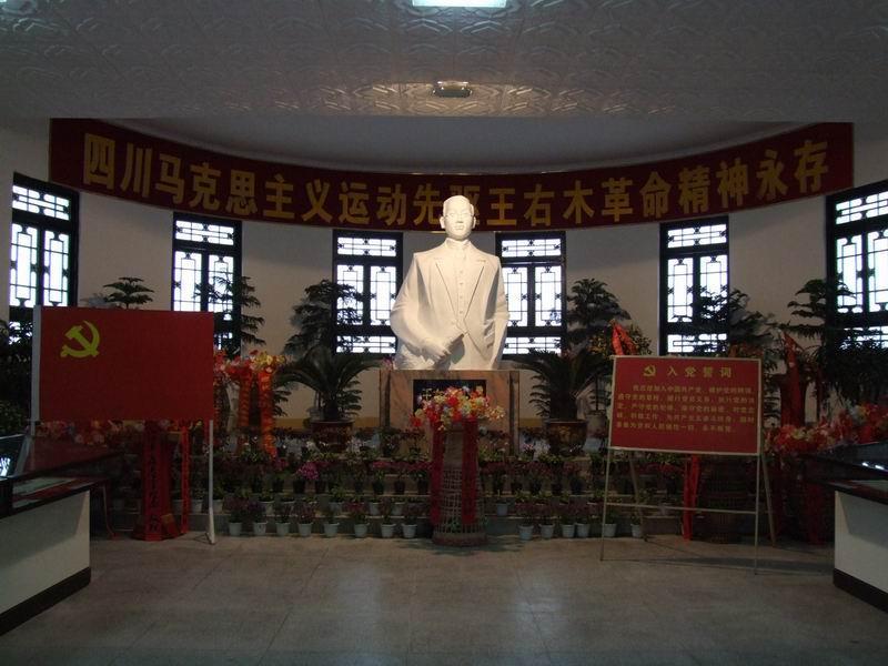 王右木纪念馆位于四川省绵阳市武都镇团山大桥下面,地处武都镇东、涪江西岸,与四川名山窦圌山隔江相望。是为纪念四川最早传播马克思主义的宣传者和四川党、团组织最早的创建人和领导人之一——王右木而建的纪念馆。 王右木纪念馆始建于1987年11月,1991年6月开馆。占地5500多平方米。系仿古建筑,馆内有纪念堂、陈列室、重檐六角亭、水竹居、桂花园等。纪念馆定名为江油市王右木纪念馆,隶属江油市建设委员会(后为江油市建设局)。2005年12月,王右木纪念馆移交给武都镇人民政府。2006年,为加强王右木纪念馆和王右木故居的管理,建立王右木纪念园,王右木故居与王右木纪念馆均归属王右木纪念园。