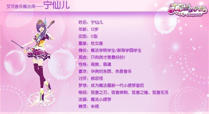 魔法学院学生兼新海学院六年级学生,乐英、宁仙儿的同伴同学,性格纯真、内向腼腆,喜欢与小花小草聊天,因为总是伴奏而希望有朝一日能够开自己的独奏音乐会。她对雷叔的声音过敏,一听到雷叔的声音就会晕倒,不省人事。她是音乐魔法师三人组的开心果。运动神经差,不过她一直都在努力。性格温柔,女人味十足。