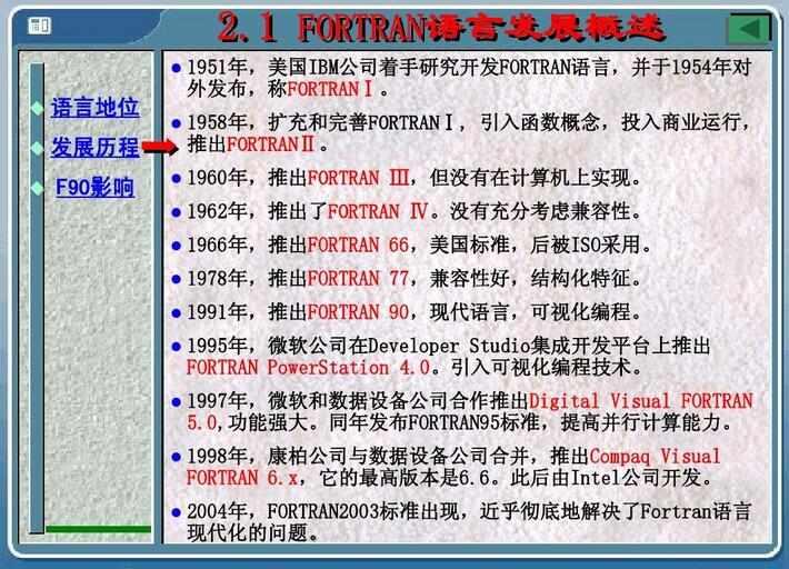FORTRAN语言是Formula Translation的缩写,意为“公式翻译”。它是为科学、工程问题或企事业管理中的那些能够用数学公式表达的问题而设计的,其数值计算的功能较强。 FORTRAN语言是世界上第一个被正式推广使用的高级语言。它是1954年被提出来的,1956年开始正式使用,直到2014年已有六十年的历史,但仍历久不衰,它始终是数值计算领域所使用的主要语言。