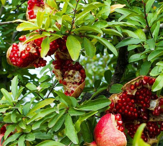 石榴单果重量平均为400—600克,最大的可达1500多克,富含蛋白质、脂肪、多种维生素以及钙、磷、铁等营养成分。石榴遍身是宝:石榴皮含鞣酸和微量生物碱,有涩肠止血、驱虫之功能,对于痢疾杆菌、伤寒杆菌等以及各种皮肤真菌具有抑制作用;石榴籽可以治疗消化不良、食欲不振和胃寒腹胀;石榴花阴干研末与铁丹同服,可使白发变为黑发;石榴叶制茶,可以清心、去热、明目等。