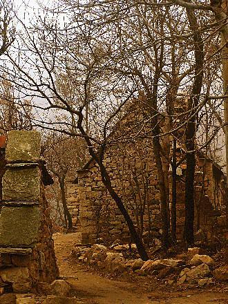 鬼谷子村从龙虎门沿进山路往北,约行3公里,沿河左岸有一个疏落的小山村,据传纵横家鼻祖鬼谷子出生在此,故名鬼谷子村。鬼谷子为战国时人,姓名传说不一,有的说姓王名诩,也有的说名利或,《东周列国志》称姓王名禅,隐居鬼谷,因以为号。此人长于修身养性和纵横捭阖之术,是一位著名的谋略家、兵家、辩士。战国时鬼谷子隐居蒙山此处教授弟子,后叱咤风云的大兵法家孙膑、庞涓和纵横家苏秦、张仪都是鬼谷子的学生。凌云宫位于大洼以北刀山前怀,海拔近800米,是一座道观,建筑年代不详。凌云宫大殿坐北朝南,面向大洼。殿前石砌台阶,房舍断壁,院落残墙,还历历可见。13通残碑字迹漫漶难辨。现存八株大银杏树,高均30余米,干粗都在4米以上,历经几百年的风雨沧桑,依旧傲然挺立,葱翠欲滴。原凌云宫古树参天,林荫蔽日,真乃深山藏古寺,别开一洞天。